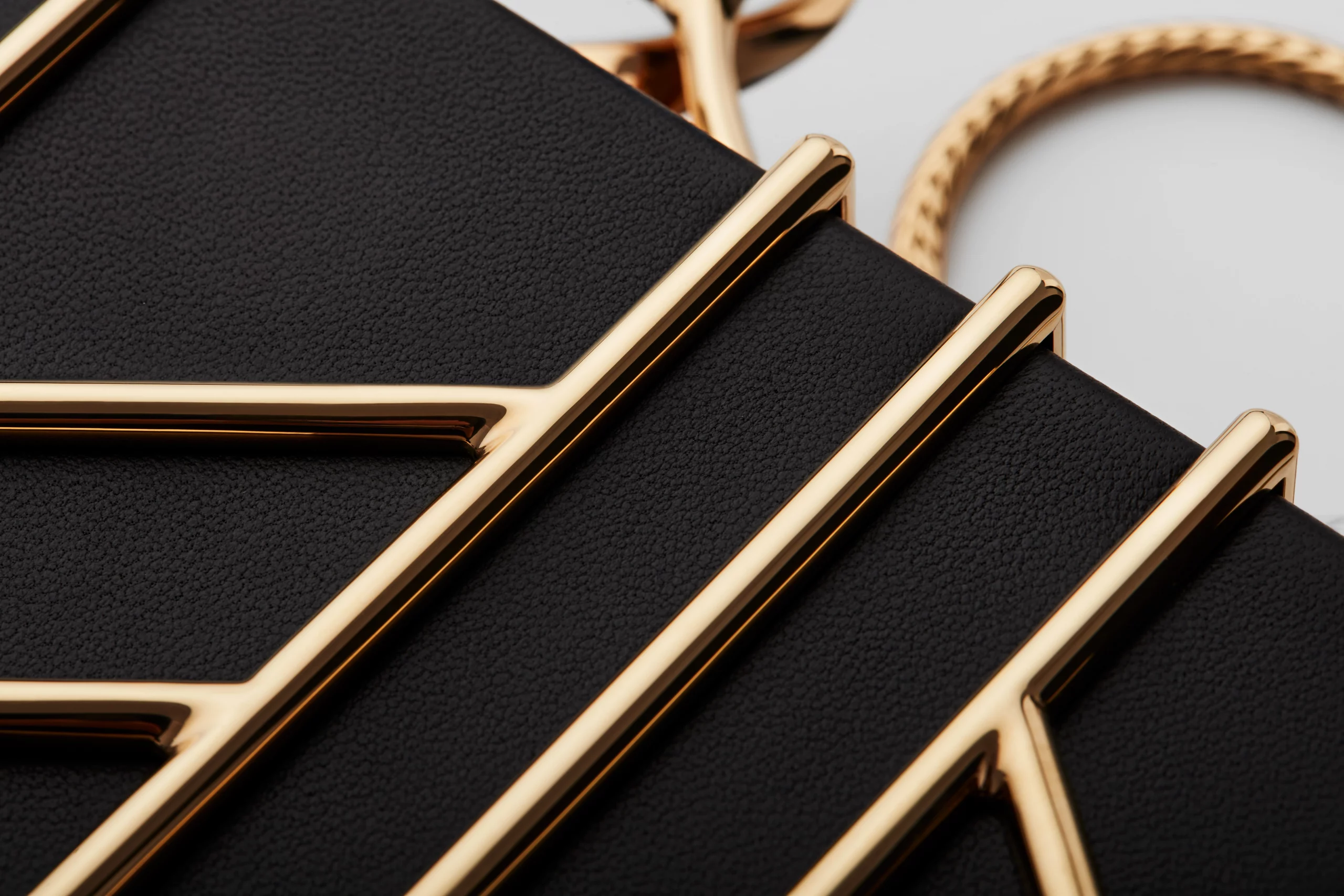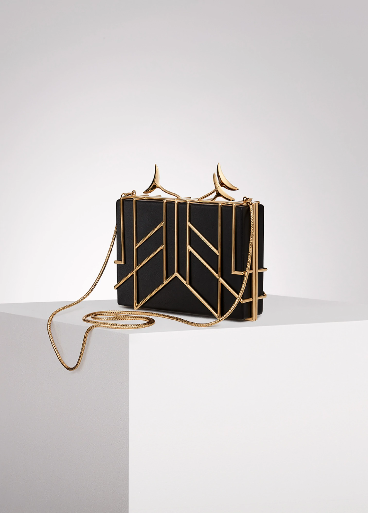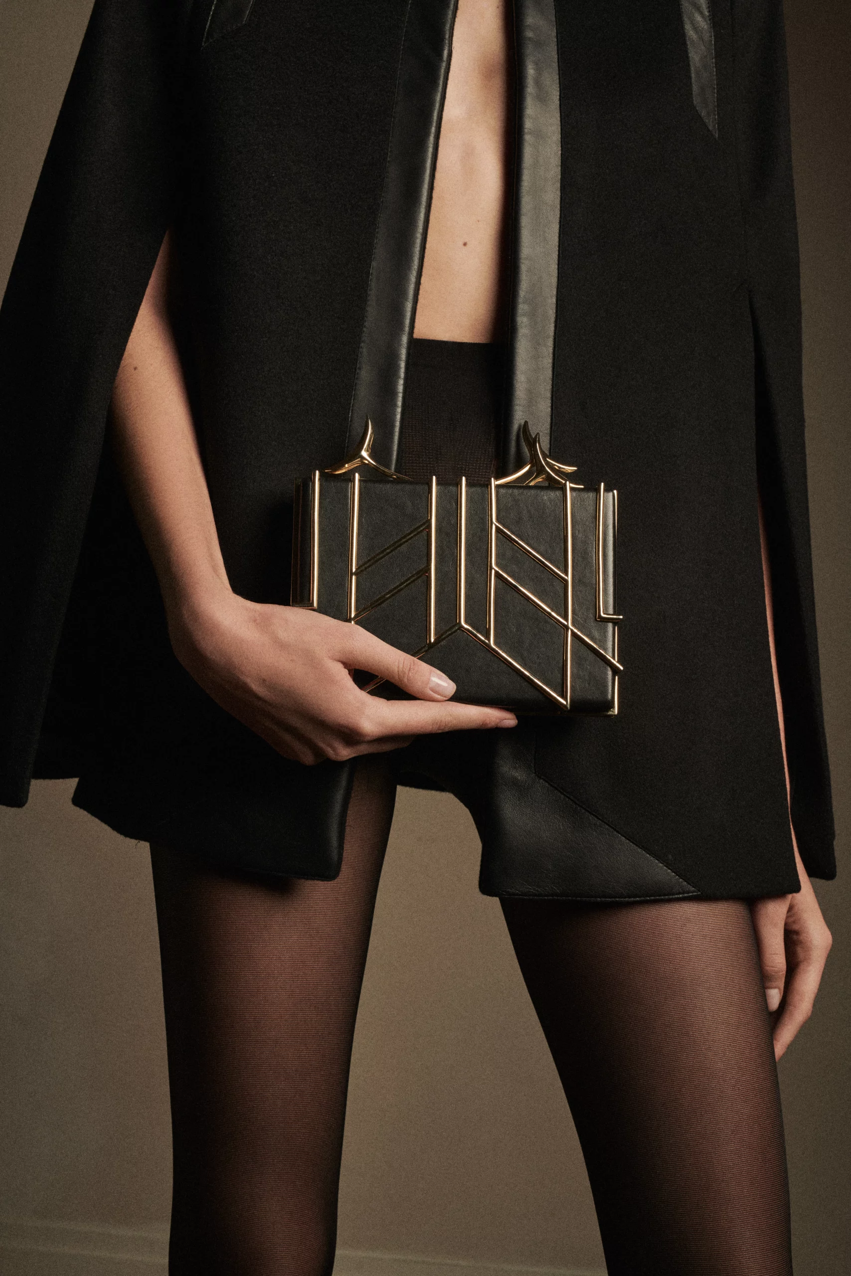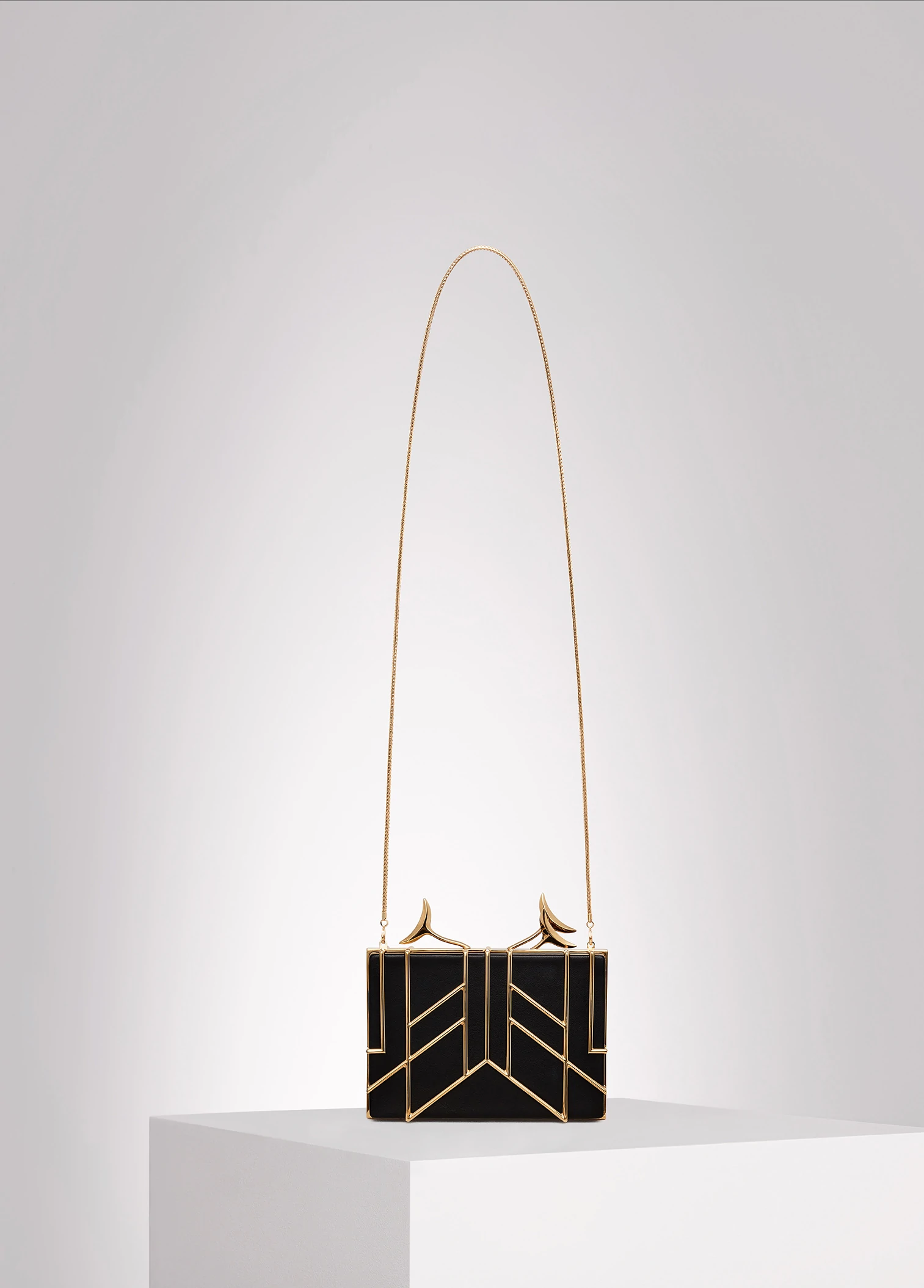 black lambskin, gold-plated brass cage, chain