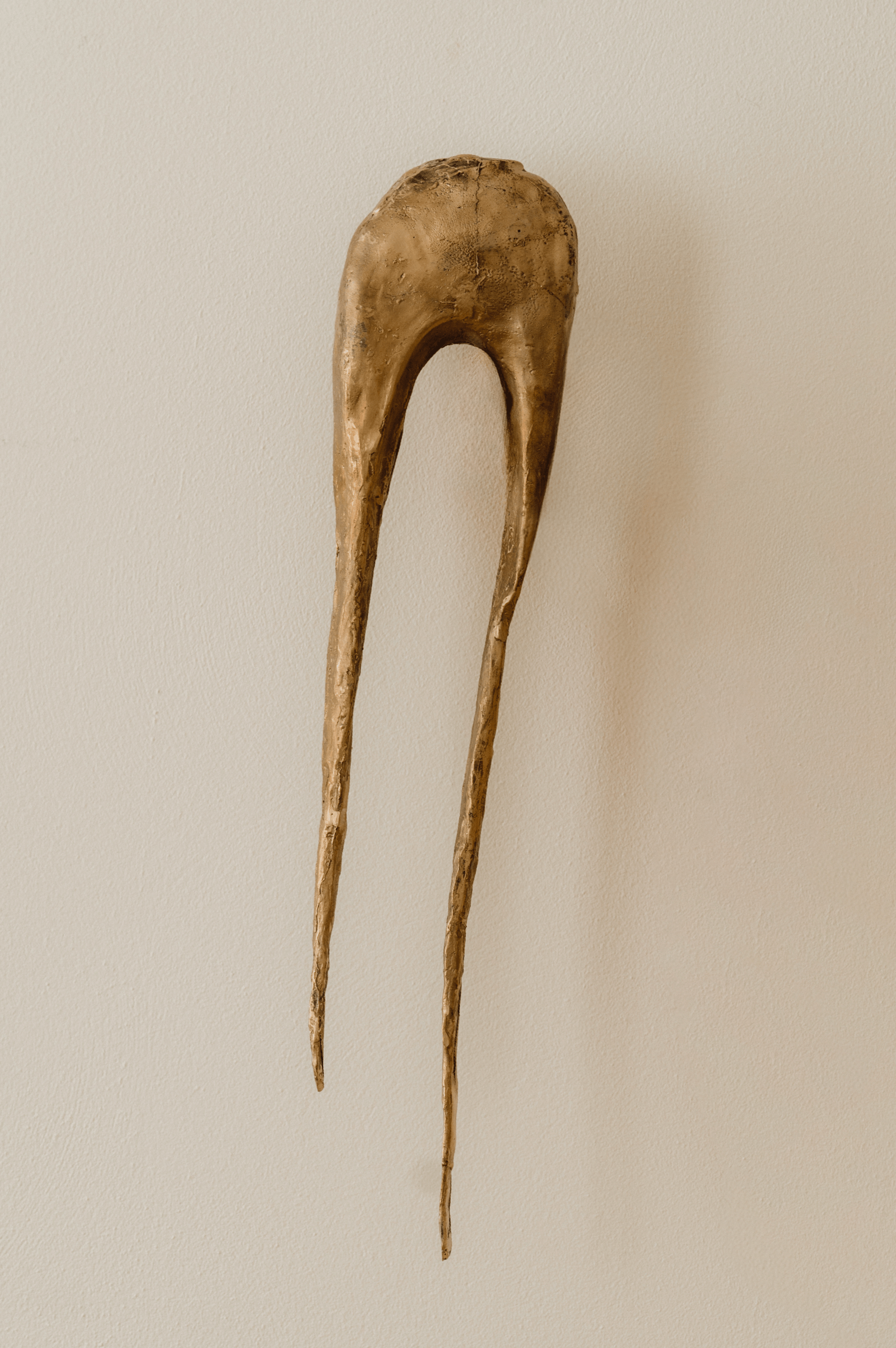 The surface of the sculpture, with a semi-matte finish in a natural shade of bronze, has been developed with gentle mindfulness, as if a different nuance of complex feeling were hidden in each of its slightly shiny pieces.