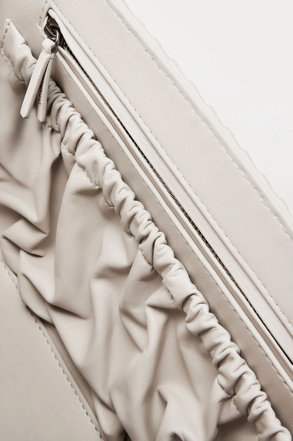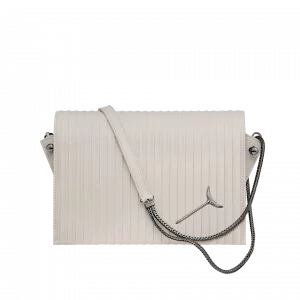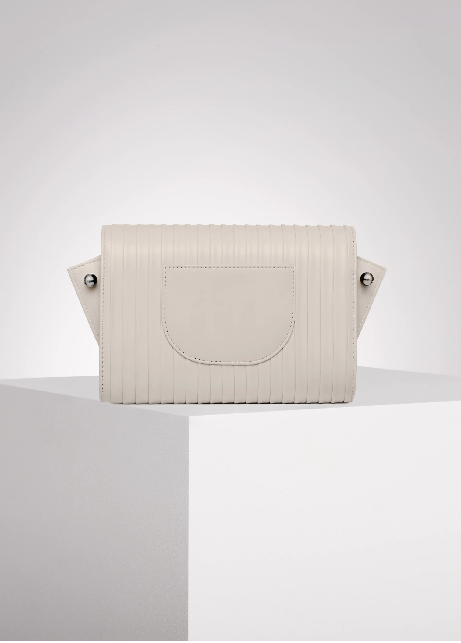 pleats, stone colour lambskin, embroidery, dark silver-tone brass